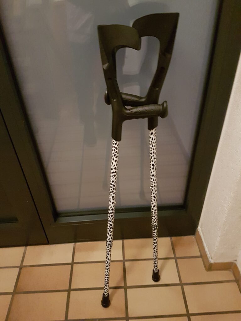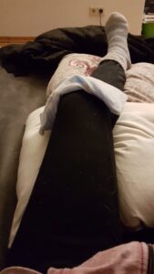 Die Tage vergingen und die Schmerzen hörten nicht auf. Ich bekam Physiotherapie und Ergotherapie aber an den Schmerzen änderte sich nichts. Das Bein schmerzte bei den kleinsten Berührungen, es verfärbte sich blau/rot wie eine Salami, das ganze Bein war immer eiskalt, wie ein Eisbein obwohl ich das Gefühl hatte, als würde das Bein innerlich verbrennen. Jeanshosen, die ich so gerne trug, vertrug ich auf einmal nicht mehr am Bein, ich konnte nur noch Jogginghosen tragen oder andere Hosen aus leichten Stoffen. Nach wie vor trug ich diese Orthese. Nachdem meine Fäden dann draußen waren, ging es immer noch nicht besser. Ich versuchte, ohne Gehstützen zu laufen aber es schmerzte weiter und ich ging zu meiner damaligen Hausärztin und erzählte ihr, wie sich meine Schmerzen einfach nicht bessern würden und dass es ohne an Gehstützen zu laufen, einfach zu schmerzhaft wäre. Sie schaute mich an und fragte ob ich Nordic Walking Stöcke Zuhause hätte und ich schaute sie erstaunt an und meinte zu ihr, dass ich welche hätte. Da meinte sie doch allen Ernstes zu mir, dass ich doch lieber mit meinen Nordic Walking Stöcken laufen solle, anstatt der Gehstützen. da würde ich dann auch nicht so krank aussehen! Bitte was?! Wenn man jetzt denkt, dass ich mir das nur ausgedacht hätte, dann kann ich mit ruhigem Gewissen sagen, das dem definitiv nicht so war, das meinte sie total ernst! Für mich war aber klar, dass ich an Nordic Walking Stöcken keinen richtigen Halt haben würde, somit lief ich wieder an meinen Gehstützen.